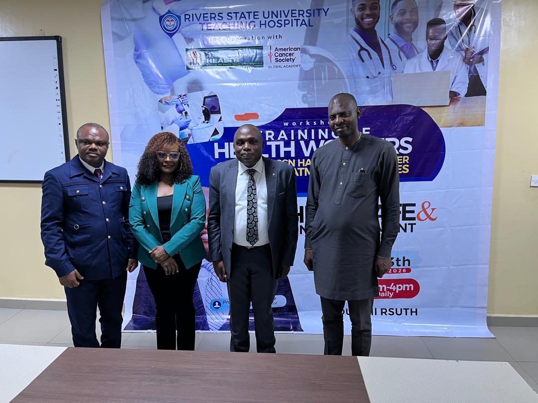 The Rivers State University Teaching Hospital (RSUTH) recently hosted a 2-day training for health workers on cancer treatment guidelines and chemo safety practices. The event, in collaboration with the Federal Ministry of Health and the American Cancer Society Global Academy, aimed to enhance health professionals’ skills in managing cancer treatment and handling hazardous drugs.